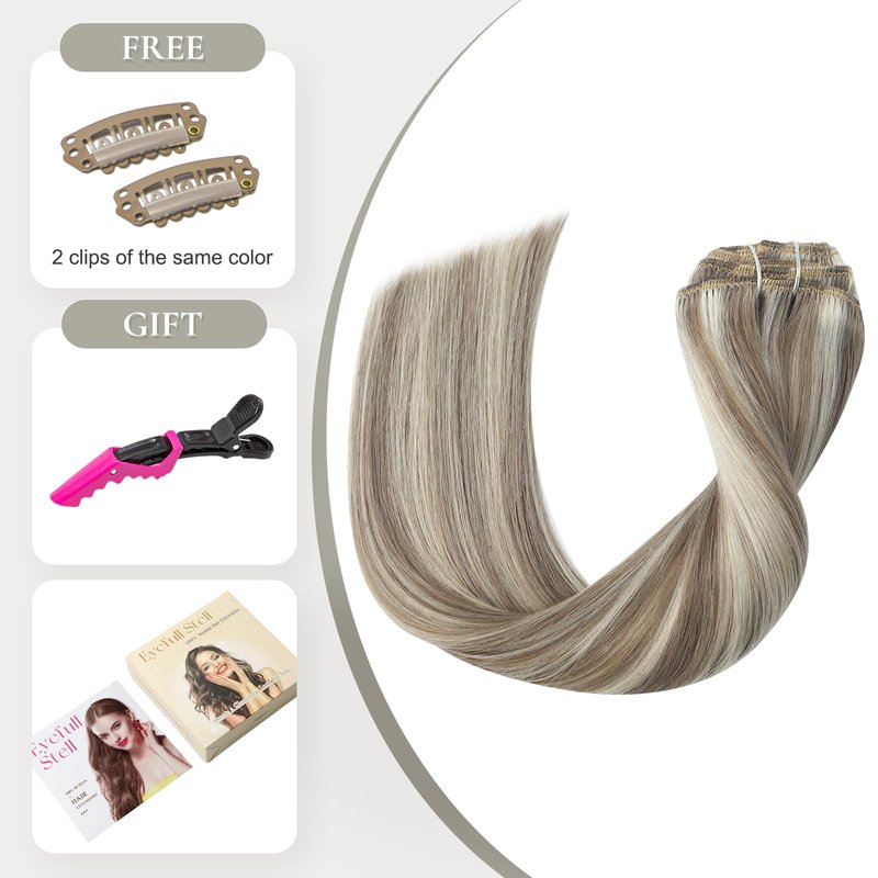 - 【Clip In Hair Extensions Quality Assurance】Eyefull Stell straight natural clip in hair extensions are made of remy real 100% human hair and superb technology, 8A grade silky salon professional human hair, soft and silky like your own natural hair, no tangling, no shedding, blend perfect with your own hair. Continuously absorb the needs of customers, hand-made & double layer hair weft make the hair not falling off, full & thick & healthy ends are what make Eyefull Stell stand out in the market.