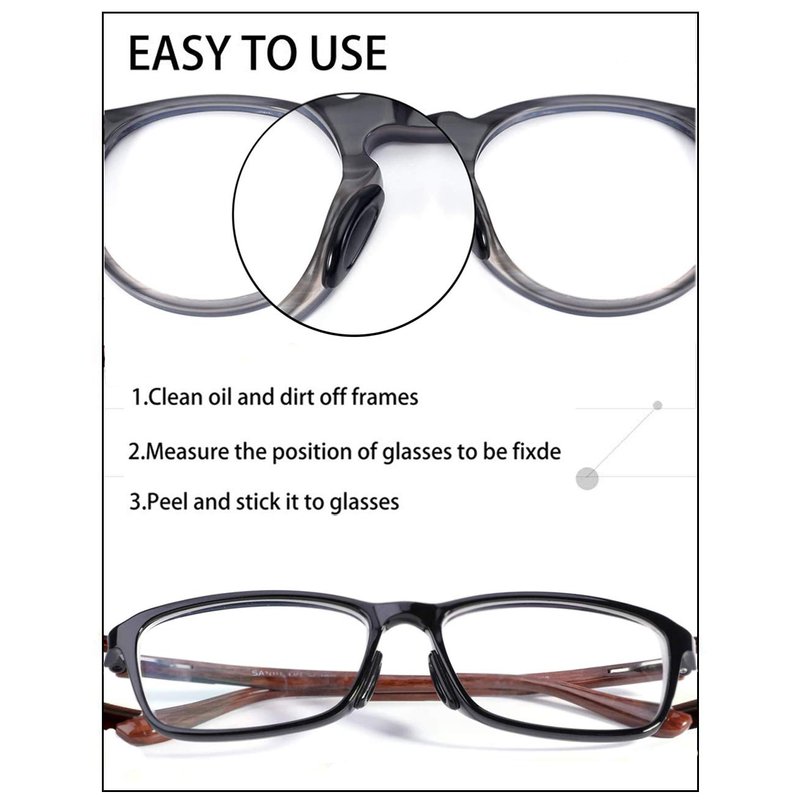 - 【Easy Using】Just peel and stick these self-adhesive nose pads on your eyeglasses.They can reduce the space between the nose and glasses frames. Keep your eyeglasses from slipping and makes frames more comfortable to wear.