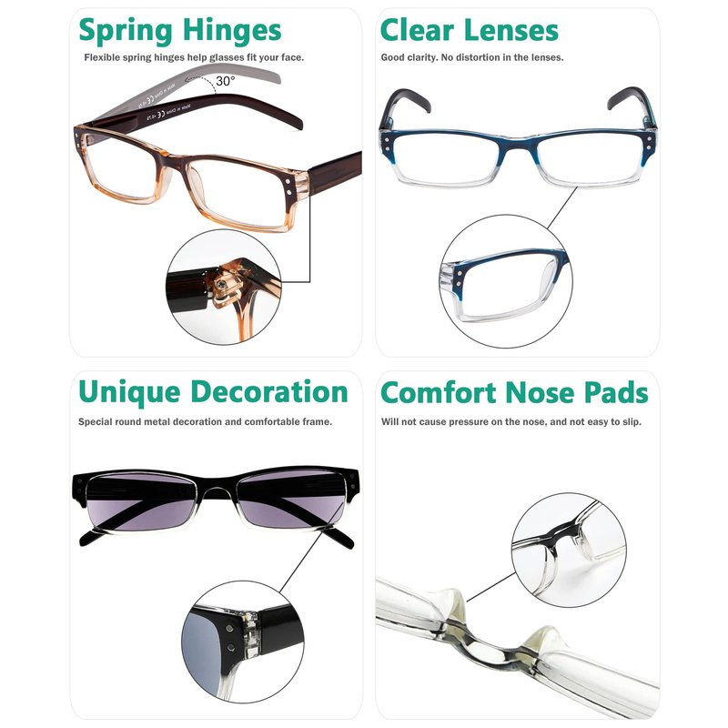 - ▲ 4 PACK READERS FOR WOMEN AND MEN - You can keep a pair in the bedroom, a pair in the living room, a pair in the office, and a pair in your purse. You don't need to run around looking for glasses when you want to read.