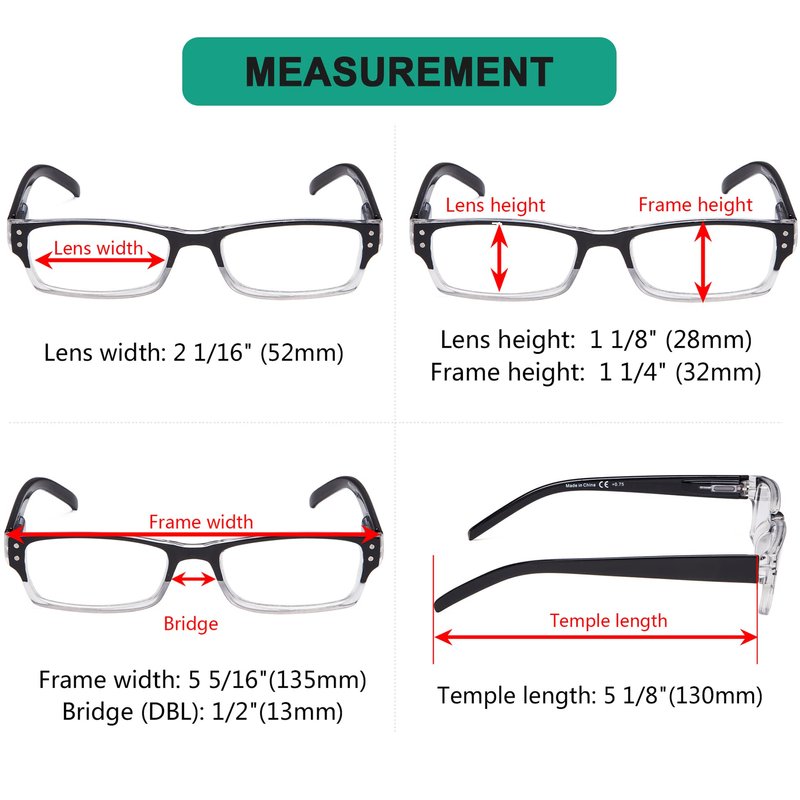 - ▲ FRAME HEIGHT - Reading glasses for women and men with spring hinges. Frame height about 1.26 inches (32mm).