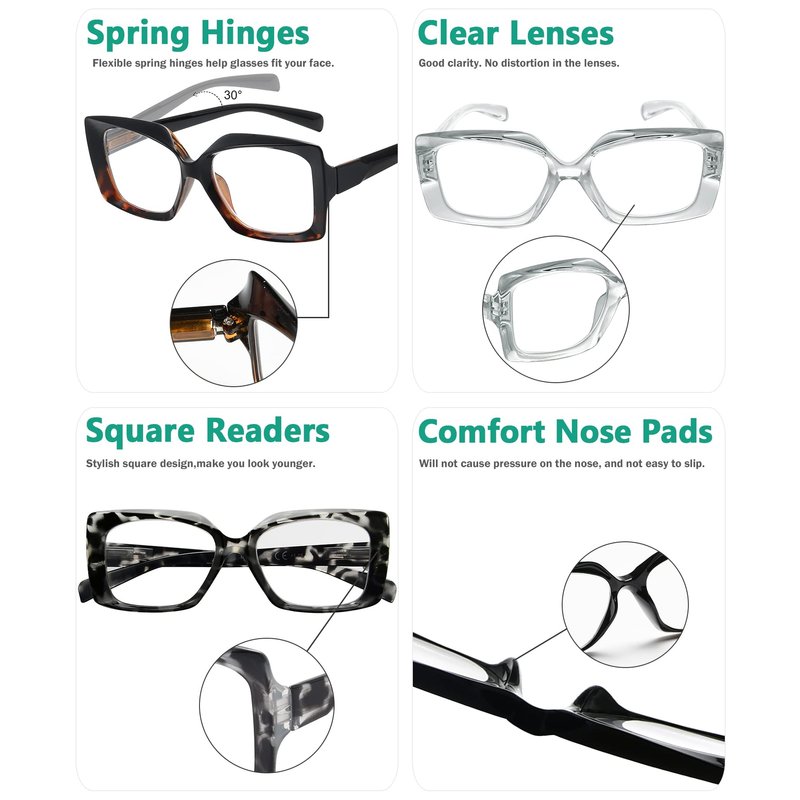 - High Quality-Spring-hinge temples, help glasses fit your face.
