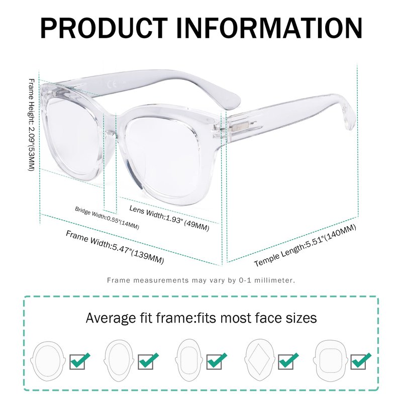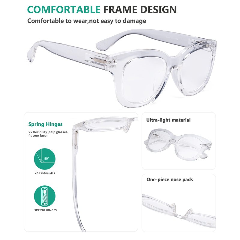 DISCOVER THE EYEKEPPER DIFFERENCE Provide the quality and ex-factory price reading glasses and customer service The frame for the most comfortable fit available today in addition to unparalleled durability Great fashion plastic design reading glasses FEATURES AND BENEFITS Optically correct Whether you are looking for reading glasses for the office or home.Eyekepper reading glasses will give you the premium protection you are looking for INCLUDES 1*Reading Glasses 1*microfiber pouch 1*cleaning soft cloth CARE To avoid damage,never clean your reading glasses with paper towels or clothing or alcohol,and also avoid using household detergents or soaps.While a few mild soaps don't harm lenses,today's extra strength soaps are powerful enough to slowly disintegrate lens coatings.