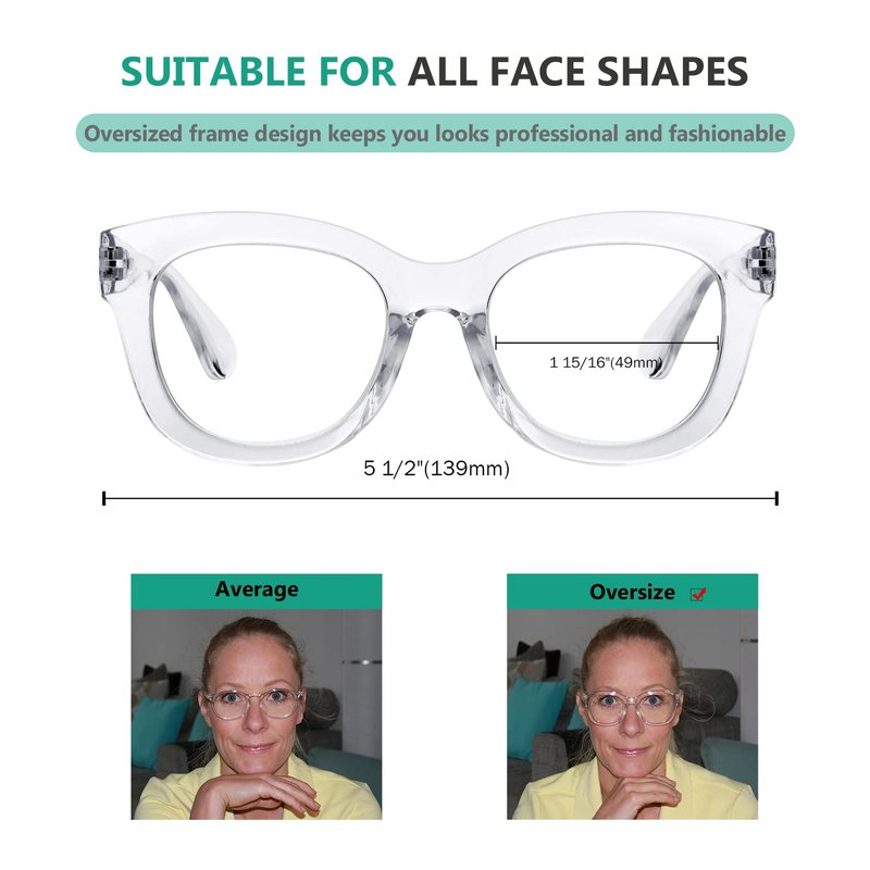 Eyekepper Oversized Reading Glasses - Retro Readers for Women Reading - Transparent Frame +2.00