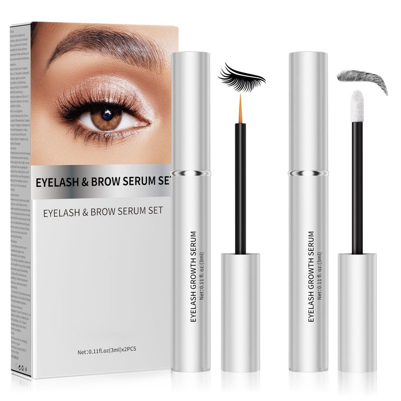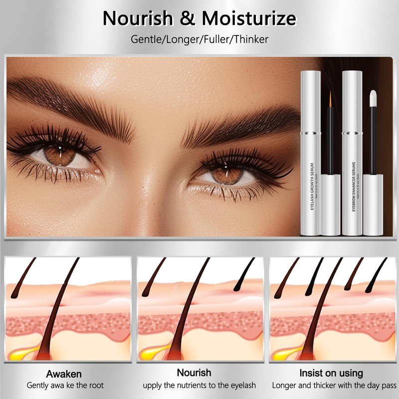 Eyelash and Eyebrow Growth Serum Two Piece Set, Eyelash Serum for Eyelash Growth Thickness, Stronger, Healthier Lashes & Brows, Longer, Fuller, and Thicker Lashes, Vegan & Cruelty-Free (3ml+3ml)