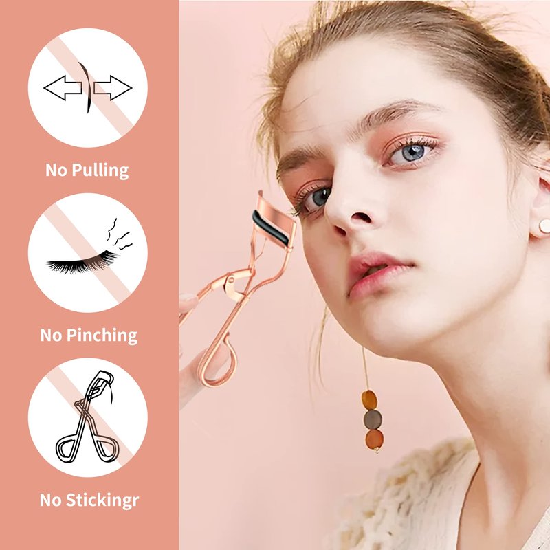 - 【No pinching & No Crimping】 The sleek, minimal design has a bouncy rubber pad to prevent pinching or crimping the lashes. It closes evenly and you can see your lashes fanned out as they curl. Just squeeze and pump the handle for maximum lift!