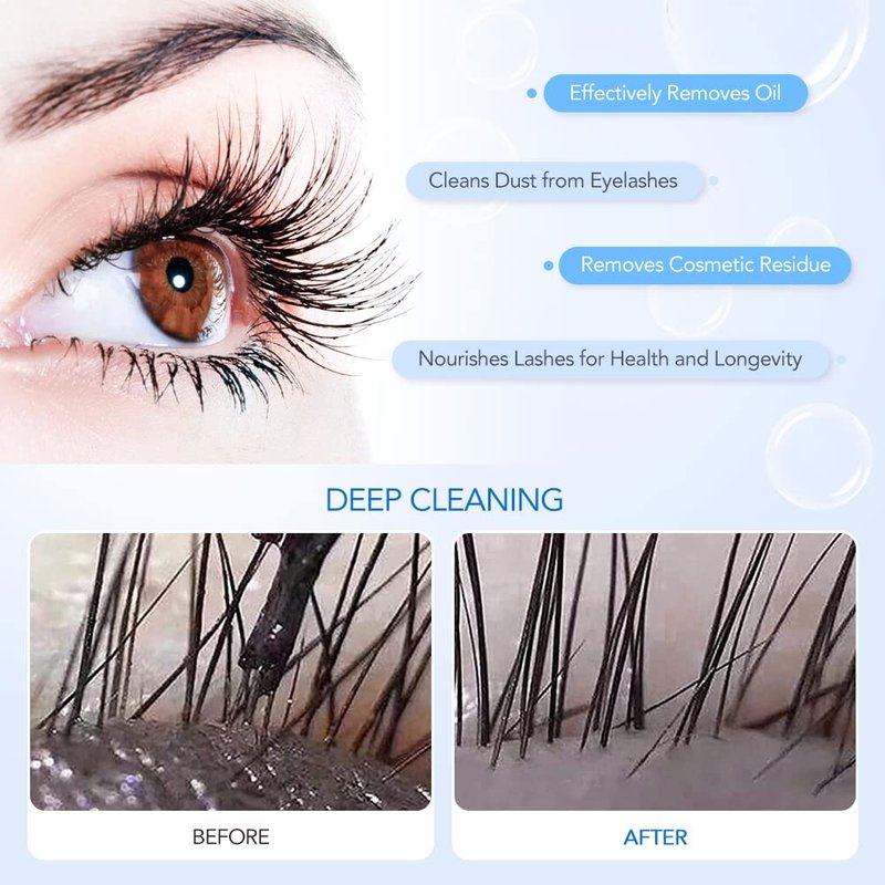 - 【FOAMING LASH CLEANSER】: This eyelash shampoo can make foam easily. Effectively remove oil, dust and makeup residues on lashes, lid margins, and under-eye area. Meanwhile, nourishing your eyelash. Extend the life of natural and artificial false eyelashes.