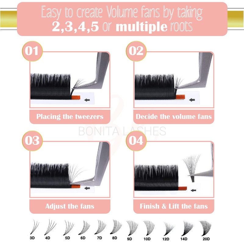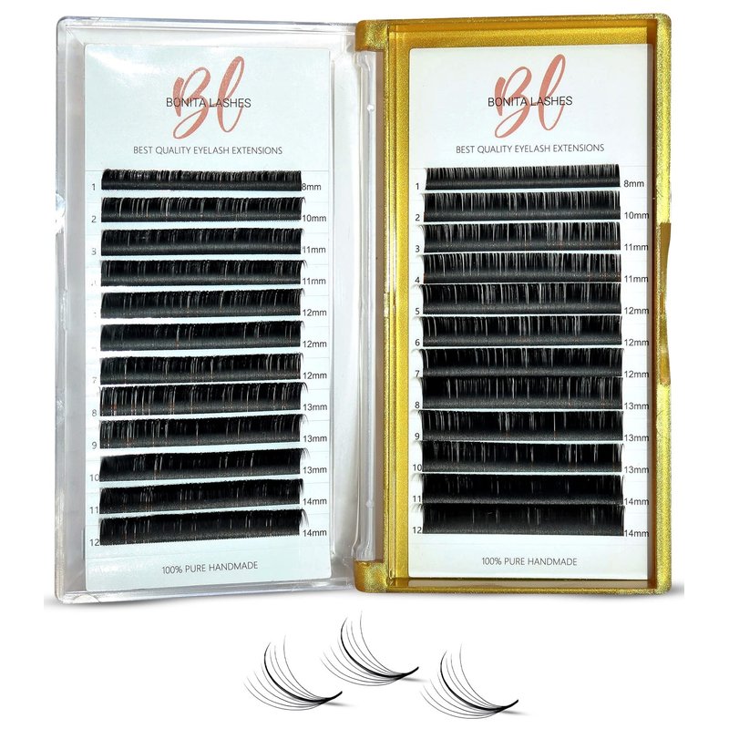 - 🎀PROFESSIONAL USE: Bonita Premium Lashes are the best choice for for beginners, intermediate or professional lash artist. Easy to apply, not easily deform as curvature will perform better to not loose curl. No residual glue, no sticky and no kink. Perfect for makeup salons, cosmetic schools, makeup artists and personal home use.