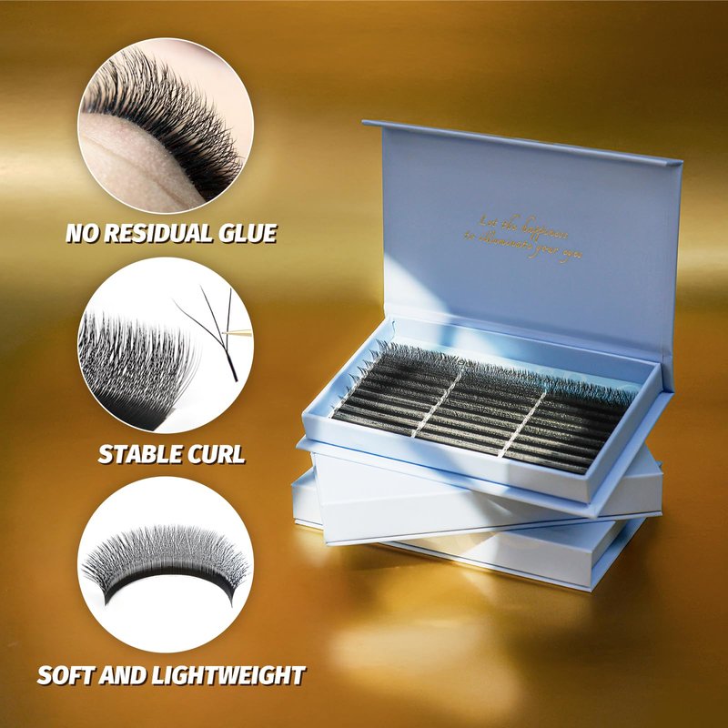 - 【Saving Time】Fast application, the premade fan volume eyelash extensions can increase density and let your grafting time saves half. premade 3D lashes extensions are fluffier, lighter, stronger, and softer to touch.