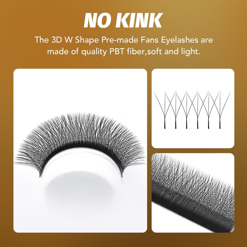 - 【Heavy Quality】 The 3D W Shape Pre-made Fans Eyelashes are made of quality PBT fiber, soft and light.Firmly bonded roots make it hard to be scattered.3D individual bonded together looks much full and furry.Neatly arranged eyelashes make it distinguishable.