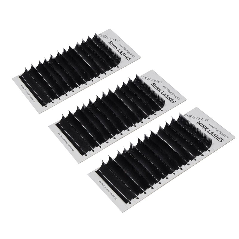 One lot of 3 trays (3 different lengths) of Mink Individual premium/high grade lashes: Color: Black ; Curl: J ; Length: .20 X 10, 12 and 14mm ; Thickness: .20 mm Mink lashes have a high gloss sheen to it, deep black in color. These lashes are imported synthetic fiber lashes which are the most luscious looking lashes