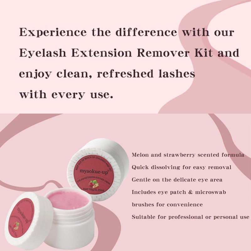 Eyelash Extension Remover Kit - 10ML Strawberry Scented Lash Remover for Lash Extensions | Includes Eye Patch & Microswab Brushes | Gentle Formula, Quick Dissolving, No Irritation(strawberries)