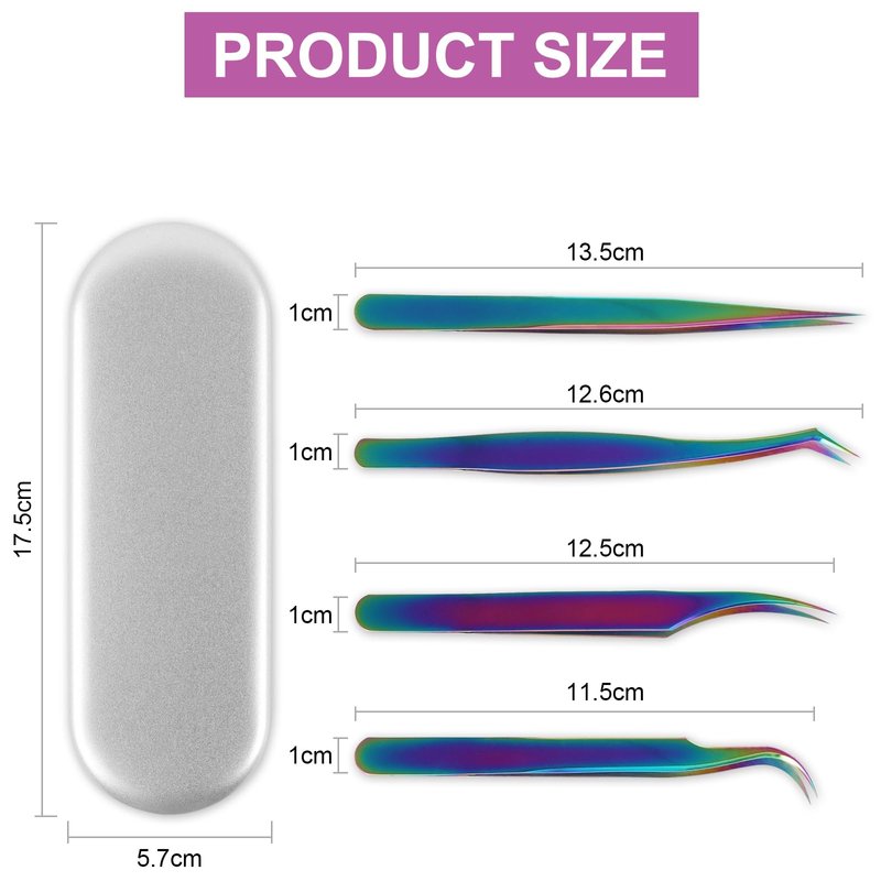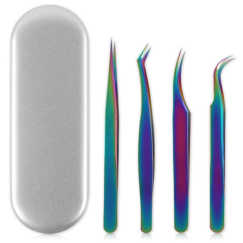 - Professional Lash Extension Supplies: This professional lash tweezers set has 4 precise tweezers for all eyelash extension needs, one straight tweezer, one curved tweezer, one volume tweezer and one 45-degree tweezer, they are the perfect combination to offer precision and great results for eyelash extensions
