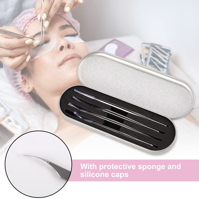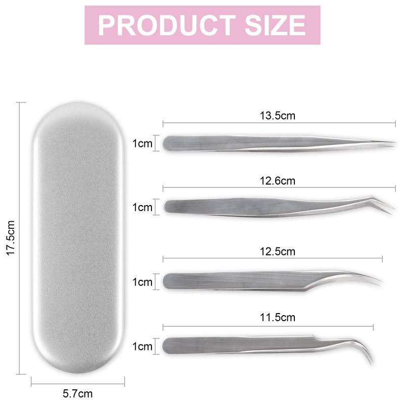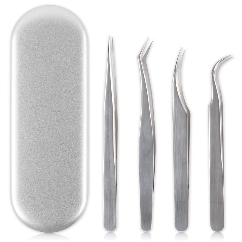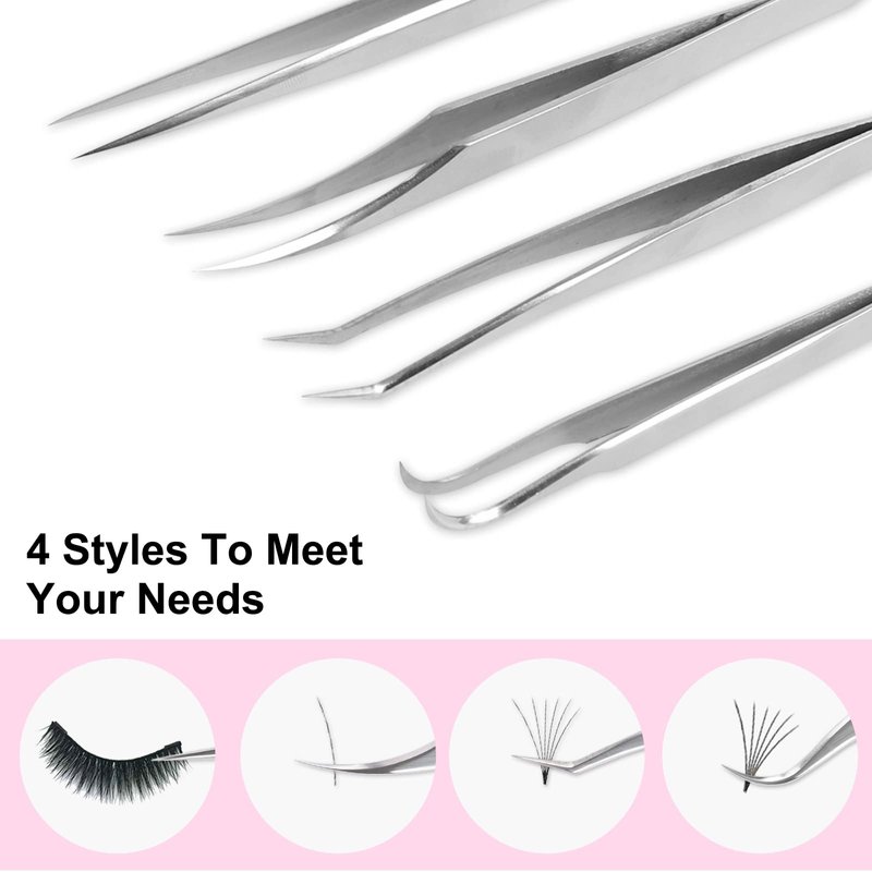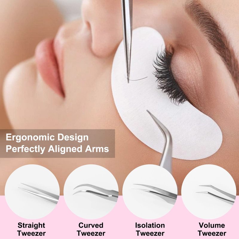 - Professional Lash Extension Supplies: This professional lash tweezers set has 4 precise tweezers for all eyelash extension needs, one straight tweezer, one curved tweezer, one volume tweezer and one 45-degree tweezer, they are the perfect combination to offer precision and great results for eyelash extensions