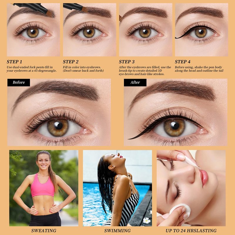- 【Water-Proof & Smudge-Proof】Our eyeliner eyebrow pen features a long-lasting, waterproof, sweat-proof, and smudge-proof formula with anti-drying design.It's ideal for athletes,swimmers, and anyone who wants long-lasting, water-resistant brows.Additionally,eyebrow pen gentle on the skin and doesn't cause any irritation.Brow pencil will make your eyebrows perfect and stay all day long.