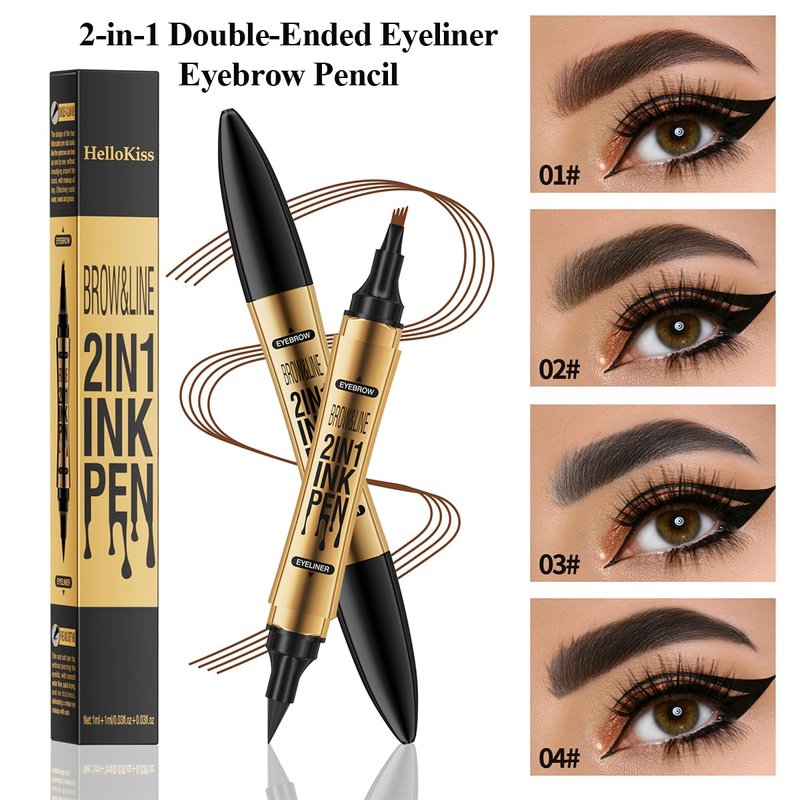 Eyeliner Eyebrow Pencil 2 in1,Black 4-Point Micro-Fork Tip Eyebrow Pen And Black Eyeliner, Long-Lasting Waterproof Dual-Ended Eyebrow Pen To Create Exquisite and Natural Eye Makeup for Women
