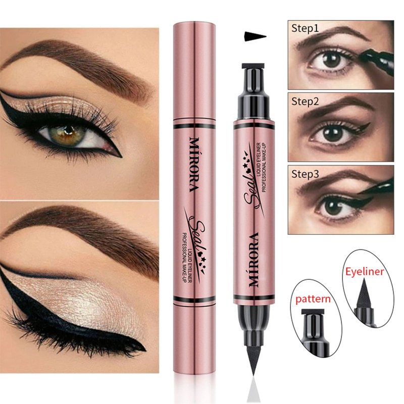 - Multifunctional Dual Head Design - this eyeliner has a thin, waterproof pen for perfect lines and a stamp for adding some extra flair to your eyes. If you opt for the 3-piece set, you'll get a wing eyeliner stamp, star eyeliner stamp, and heart eyeliner stamp.