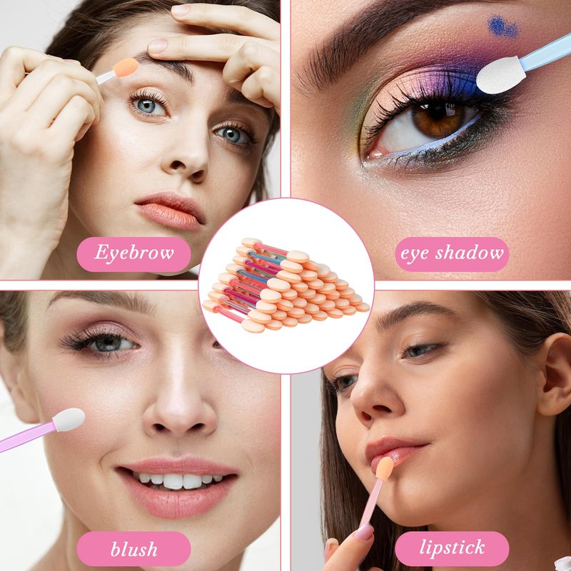 Eyeshadow Applicators, 50Pcs Disposable Dual Sides Eye Shadow, Eye Shadow Brushes Set, Sponge Brush, Multicolor Sponge Brush, Eye Makeup Brushes for Women Girls(Five Colors)