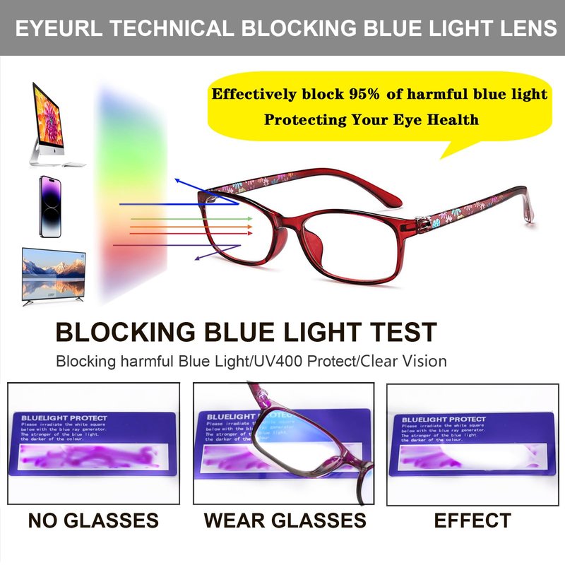 - 【ANTI BLUE LIGHT】Blue light blocking glasses anti harmful blue ray, protect the eyes from computer visual syndrome and reduce headache,protecting eyes from invisible injurious blue ray which from Computer/Reading/Gaming/TV/Phones.