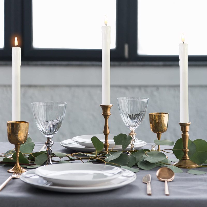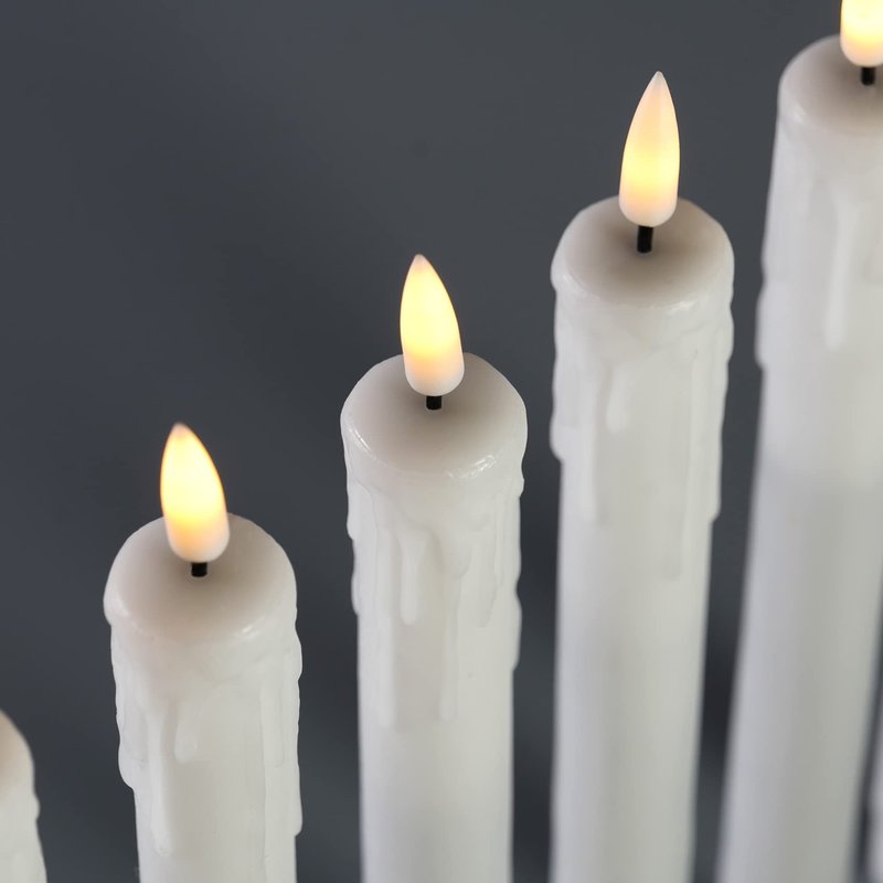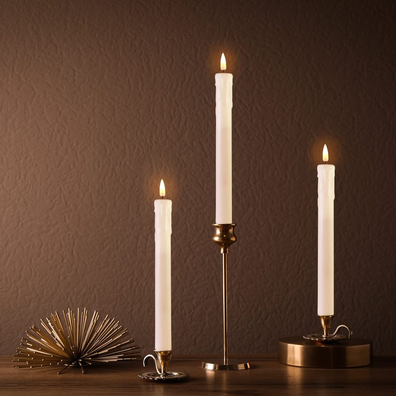 - Safe Comes First - Flameless, smokeless, no drips to ruin your loved furniture, great alternative to real candles, no worry that kids or pets knock candle down. This realistic white taper candles is amazing decoration for home, theme party, wedding, christmas and gift.