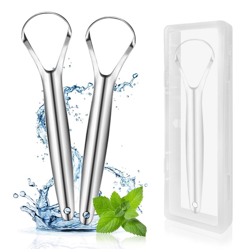 - 【Reduce Bad Breath & Improve Oral Hygiene】If you want to have a fresher mouth then you need to get yourself a metal tongue scrapers! Scraping your tongue with tongue scraper for adults twice a day is a quick way to remove any buildup of food particles, dead cells, and other debris that can accumulate on the tongue, reducing the risk of bad breath and improving your oral health.