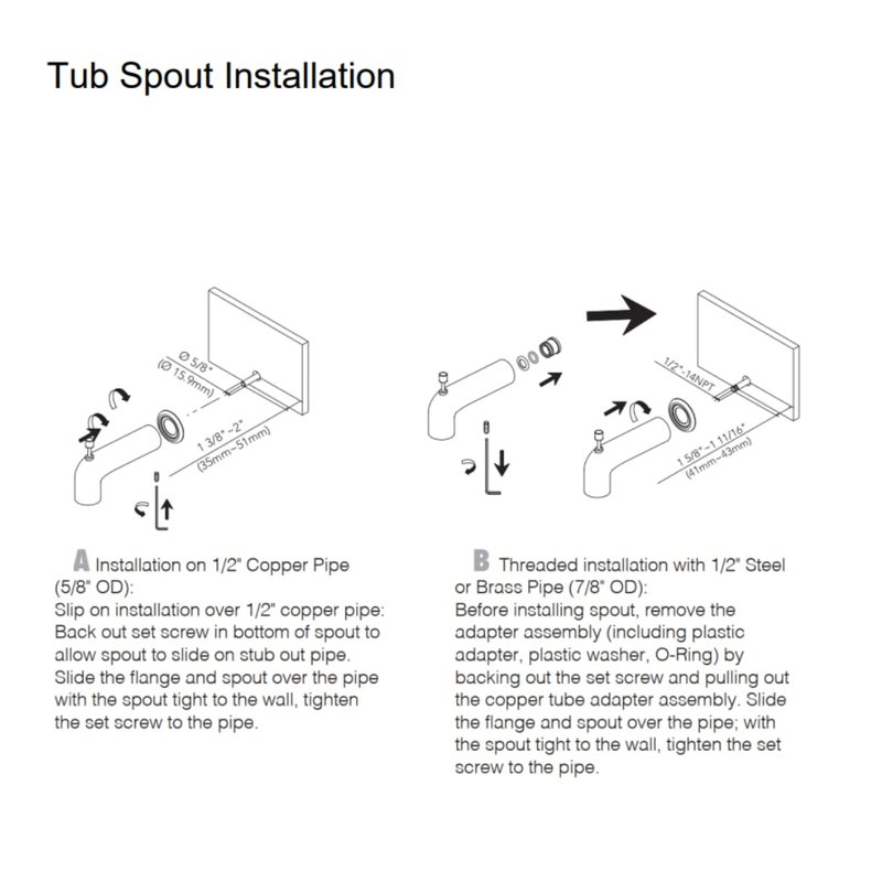 - BATH TUB SPOUT: The diverter spout features a 7 inch extended spout length to avoid flow disruption during use, and can easily adjust the directional flow of water using the diverter on the nose of the spout