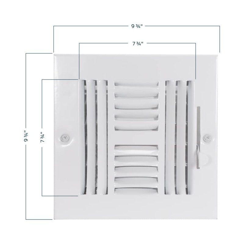 - WALL OR CEILING VENT: 4-way Air vent deflector features a duct opening which measures 8 inch x 8 inch, and can be used for wall or ceiling mount; the overall dimension measures 9-3/4 x 9-3/4 inches
