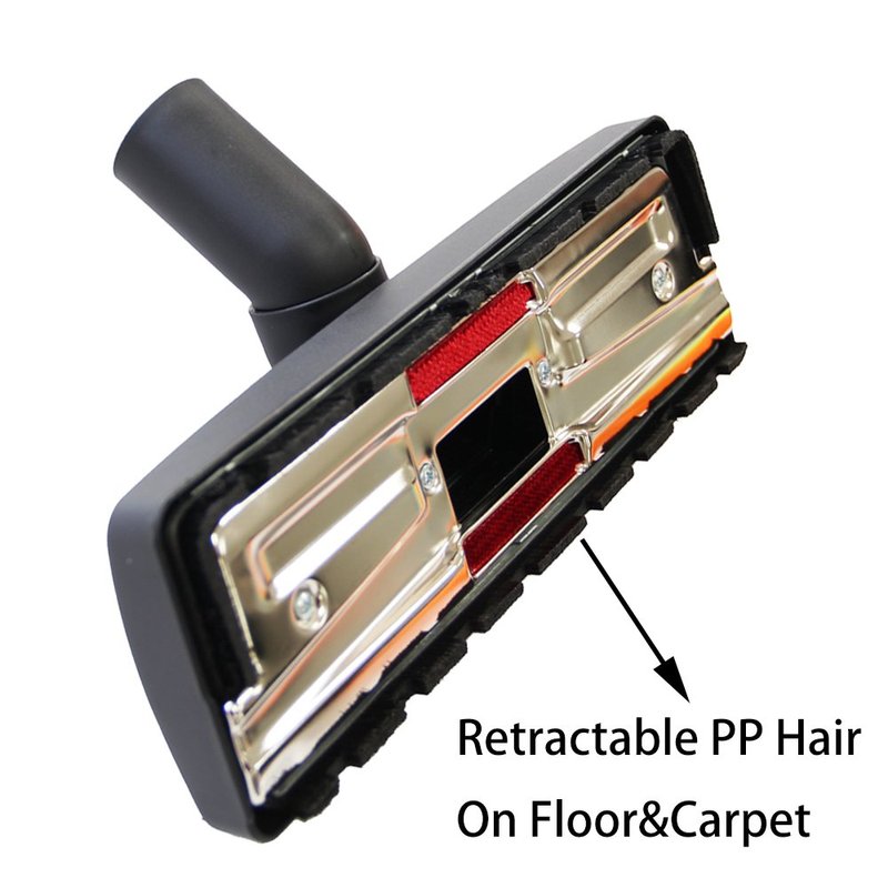 - 2 New Functions choose: The brush head is dual purpose brush with two models for floor or carpet.Bristle Base for hard floor.Metal Base for carpet.