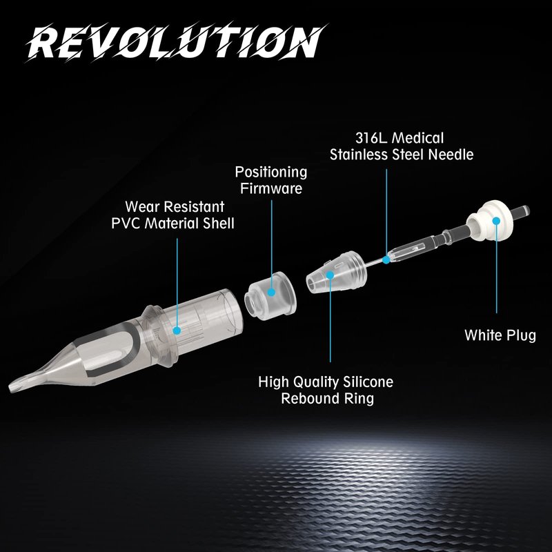 - Revolution tattoo cartridges have safety membrane inside cartridges system that stops ink from passing through to the tube.