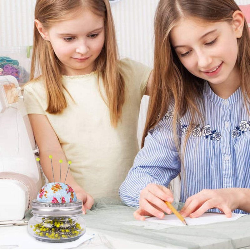 eZAKKA Sewing Pins Ball Head Pins Quilting Pins in Glass Storage Jar Containers with Pin Cushion Lid