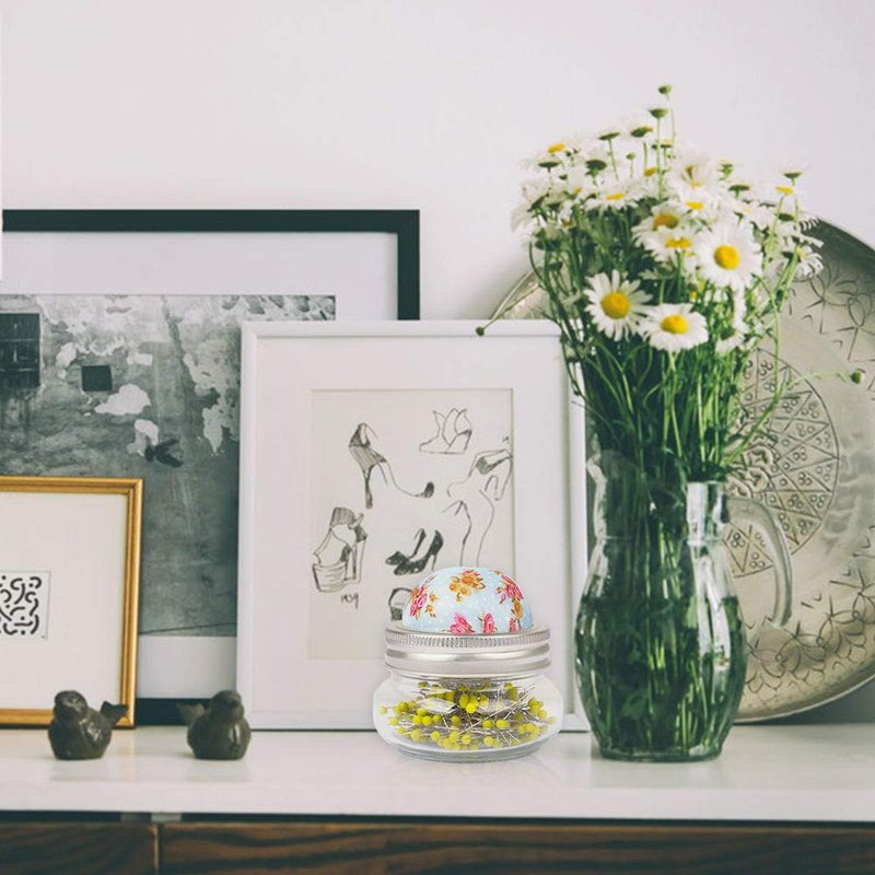 - PIN CUSHION LID - The sewing pin cushion is made from fully stuffed cotton fabric fixed to the glass lid: pin cushions for sewing provide a safe place to store pins, keeps your pins and needles safe, clean and within reach and the pincushion can also stay as a decoration.