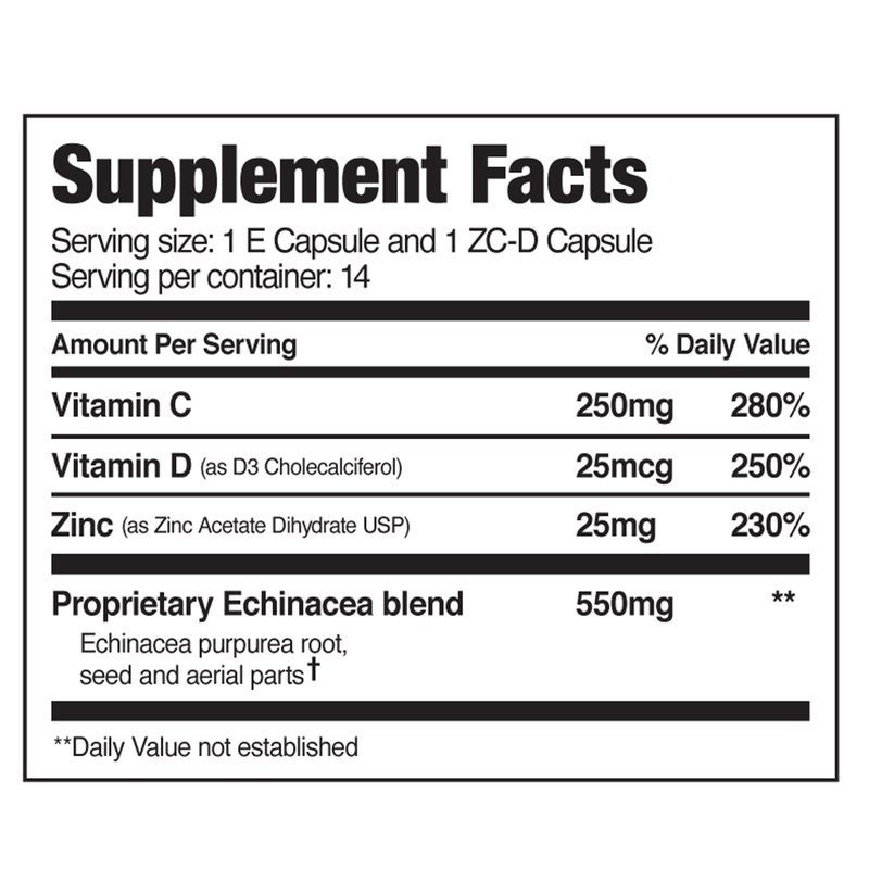 Give your immune system the boost it needs with EZC Pak+D 5-Day Immune System Booster. EZC Pak+D combines the immune boosting benefits of Echinacea, Vitamin D, Vitamin C capsules and Zinc capsules into one easy to use 5-Day pack. EZC Pak was created by a physician to reduce inappropriate antibiotic use in viral upper respiratory infections. It is clinically formulated to deliver optimal immune support over a 5-day tapered course. Echinacea has long been used for immune support by promoting T-cell activity, and Vitamin D plays a critical role in controlling the body's immune response. Zinc is considered to be involved in virtually every aspect of immune health and function and Vitamin C is critical to the immune system's function and a wide range of metabolic reactions and is often depleted during illness. EZC Pak combines these essential vitamin, mineral and herbal supplements together into one powerful immune supplement: a 5-day immune booster that works when you need it.