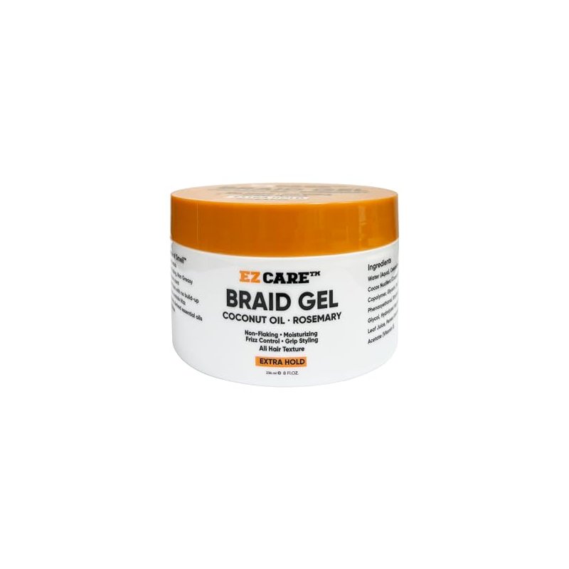 EZCARE Braid Gel Coconut Oil/Rosemary/Non-Flaking/Moisturizing/Frizz Control/Grip Styling/All Hair Texture/Extra Hold (8 oz.)