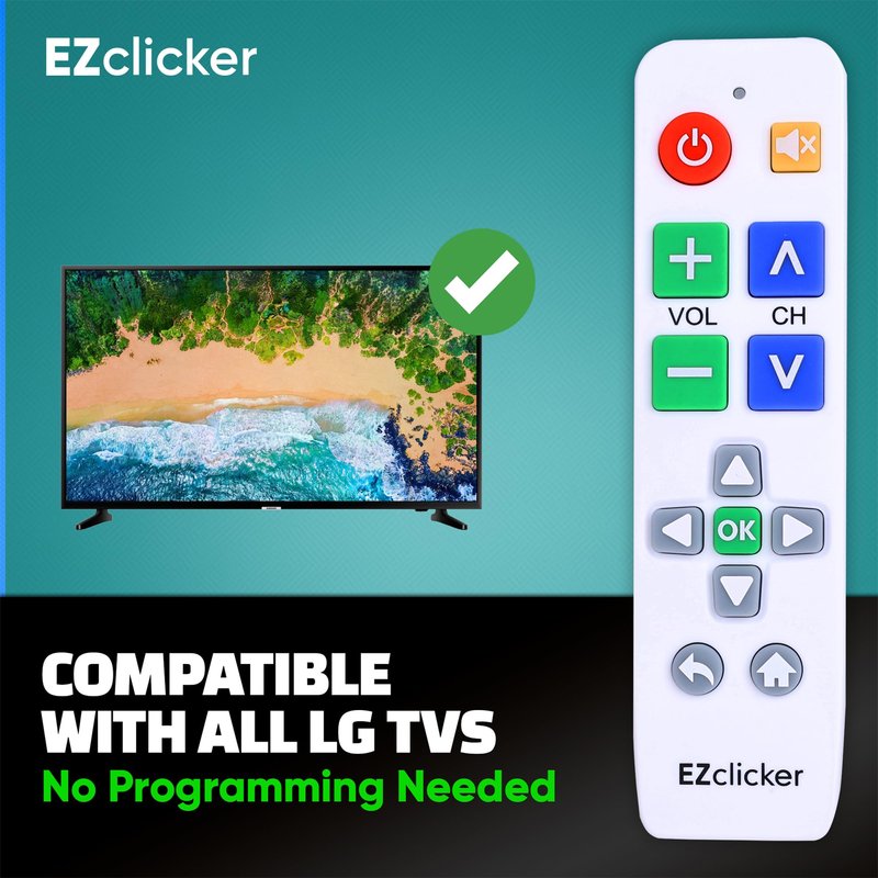 EZclicker Big Button TV Remote Control for All LG TV Only Simplified and Easy to Use (2xAAA Batteries not Included)