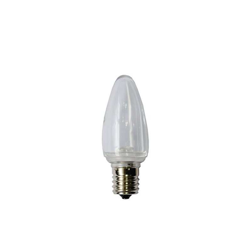 5 Pure white C9 smooth LED light bulbs screw into standard C9 sockets E17 base. Our LED light bulbs have an average lifespan of 60,000 hours. Christmas lights available in a wide variety of colors. Use C9 LED light bulbs for Christmas and make a dazzling display this year. Specifications 2.95 inches tall (total height including base) 2 inches tall (just the bulb/lens) 120vac, 60 Hz E-17 Base Type for C9, 0.96 watts per bulb.