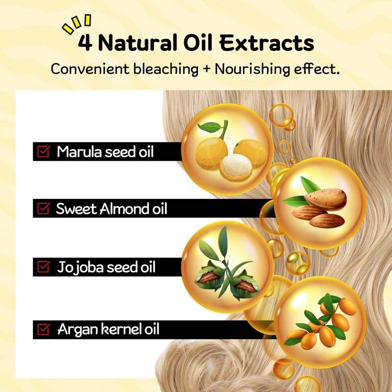 - Infused with Marula Seed Oil to minimize hair damage: Featuring Marula Seed Oil, our formula protects and nourishes your hair during the bleaching process, ensuring minimal damage and maintaining hair health.