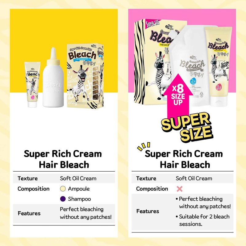 - Smooth cream formula for worry-free application: eZn super size creamy hair bleach's smooth cream formula guarantees even application without blotches, delivering a consistent and natural-looking color transformation.