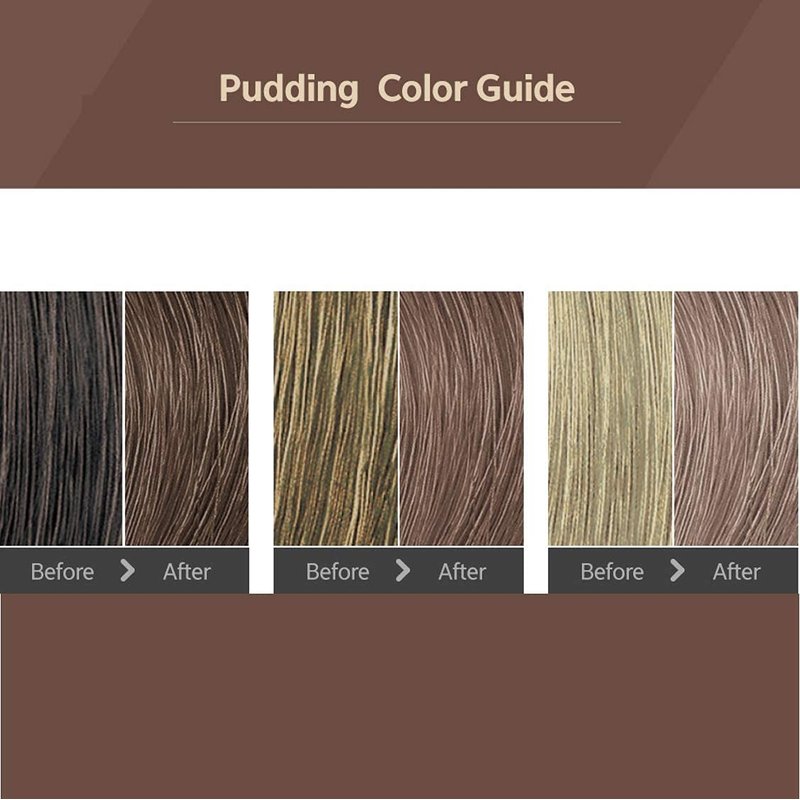 - Pudding Type Formula:Put 2 hair dying liquids into a container and just shake it shake it~! An innovative hair dye turns into a bouncy pudding type formula.