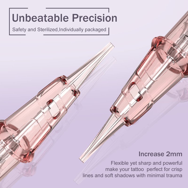 - 【Safety and Sterilized】Pinki cartridges needles used light clear color tips shell, better visibility.Needle is made of surgical stainless steel, 100% EO gas sterilized and Individually packaged. 20pcs/box.
