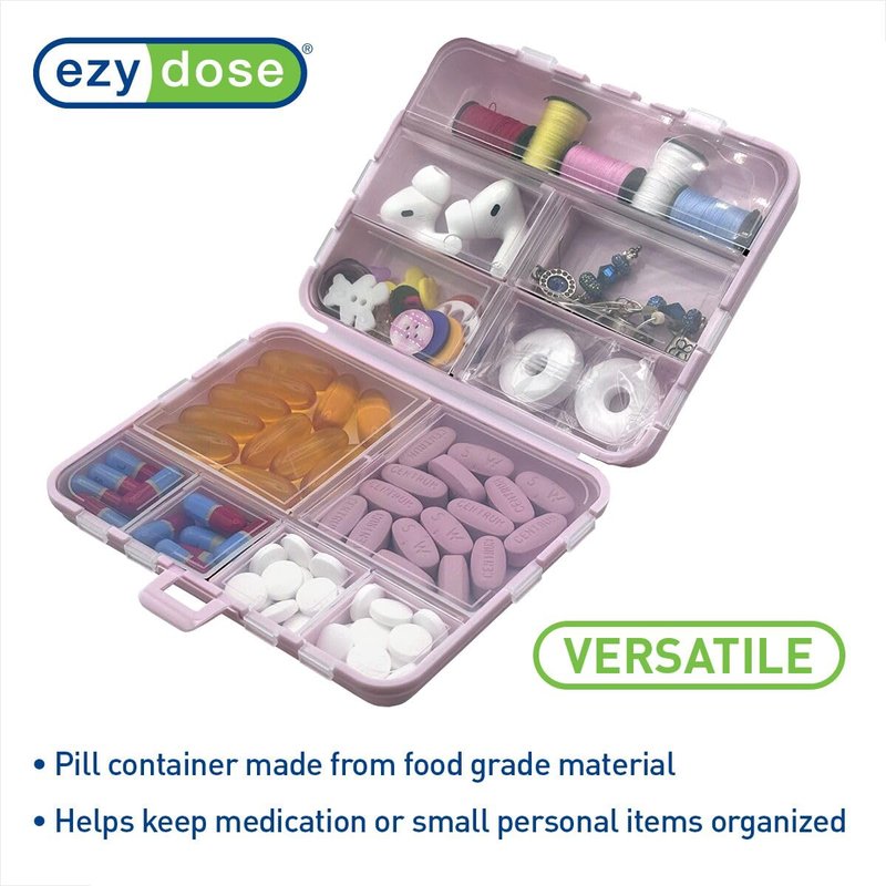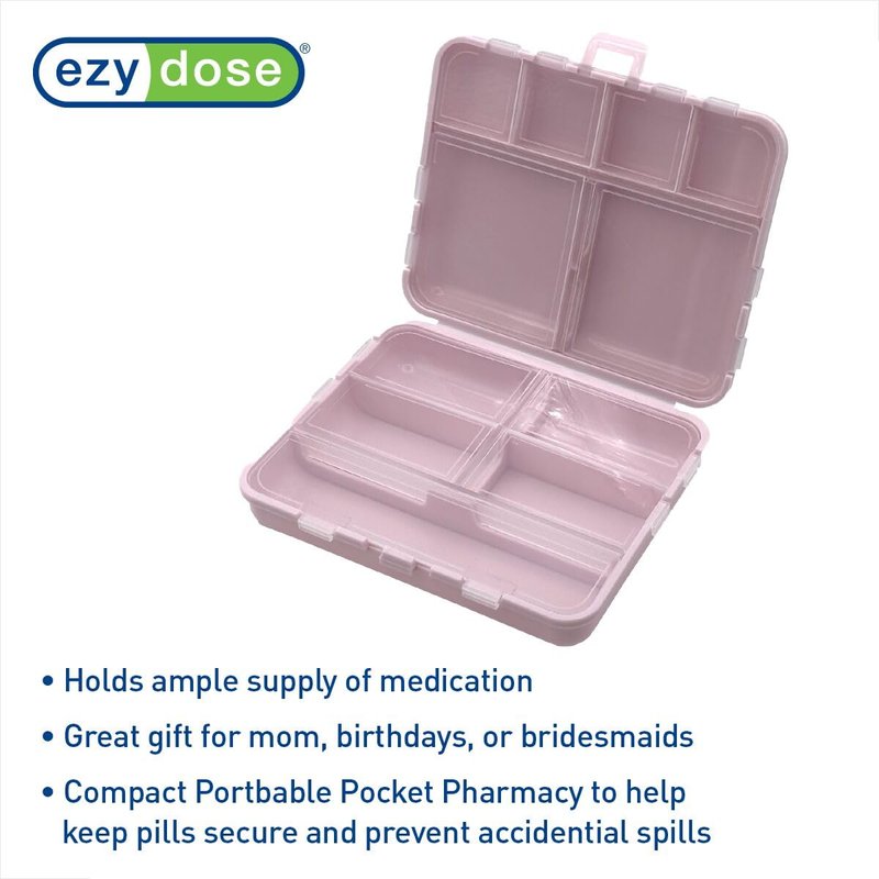 Ezy Dose Foldable Pill Case, Medicine Planner, Vitamin Organizer Box, Convenient and Easy to Use, 11 Individual Compartments with Various Sizes, Travel Friendly, Compact Pocket Pharmacy Style, Pink