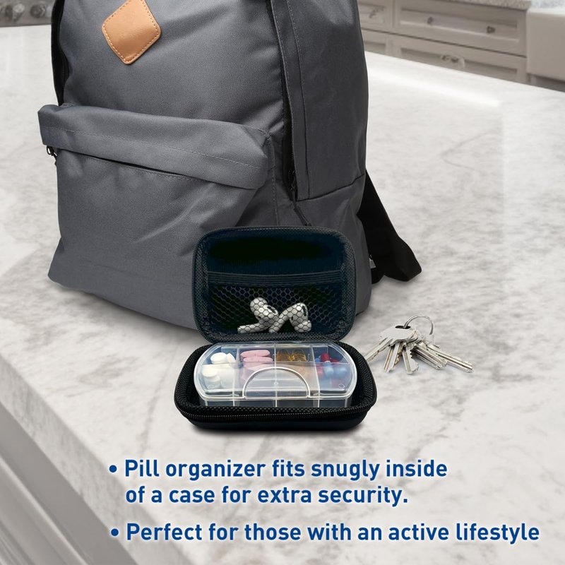 - COMPACT AND DURABLE: Our secured zippered pouch for organized pill storage is ideal for those with a busy and active lifestyle