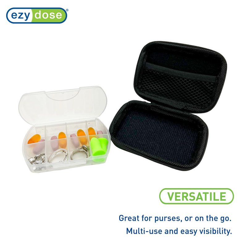 EZY DOSE Hard Sided Pocket Pharmacy Pill Case, Features Zippered Pouch, Easy to Use Design, Portable and Perfect for Daily Usage, 8-Comparments, BPA Free, Black