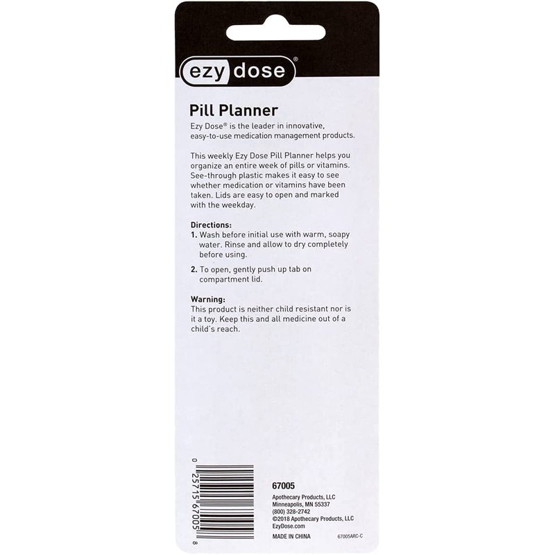 EZY DOSE Weekly (7-Day) Pill Organizer, Vitamin Case, and Medicine Box, Medium Compartments, Color May Vary