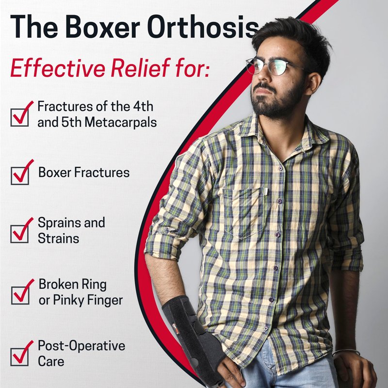- Maximum Support: The Boxer hand & wrist braces have been developed meticulously to guarantee optimum healing and pain relief. They feature removable palmar spoon, metacarpal phalangeal, dorsal, and ulnar nerve brace stays designed to eliminate pressure on the ulnar styloid. The compression wrist brace supports the hand, wrist, and fingers at a correct angle when treating 4th and 5th metacarpal fractures.