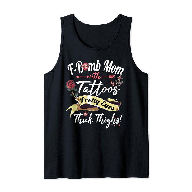 F Bomb Mom Tattoos Pretty Eyes Thick Thighs Cute Mommy theme Tank Top