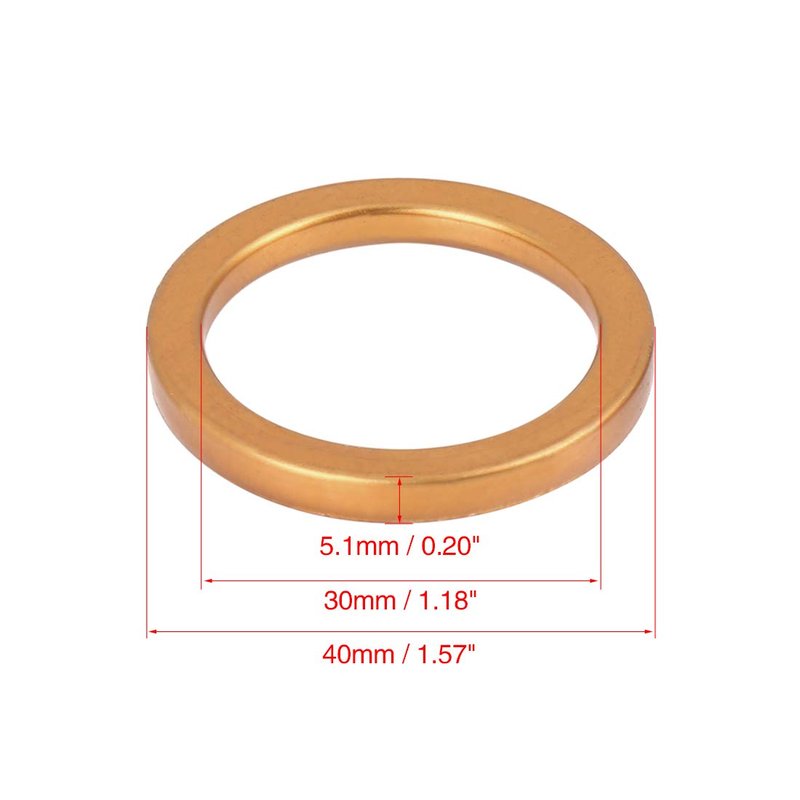 - Inner Diameter: 30mm / 1.18". Outer Diameter: 40mm / 1.57". Thickness: 5.1mm / 0.20"