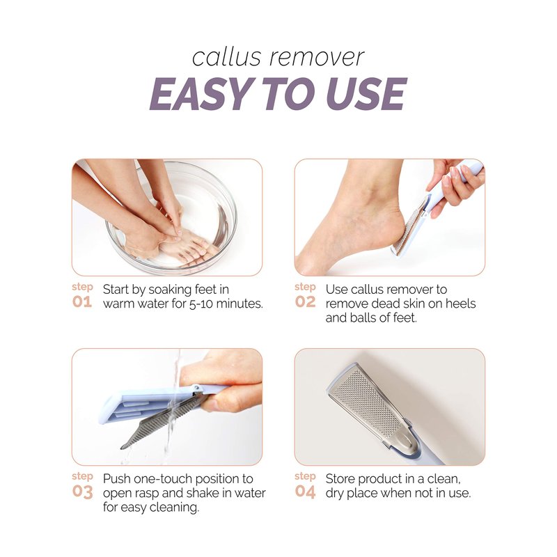 - Soak your feet in warm water and use callus remover to remove dead skin on heels and balls of feet