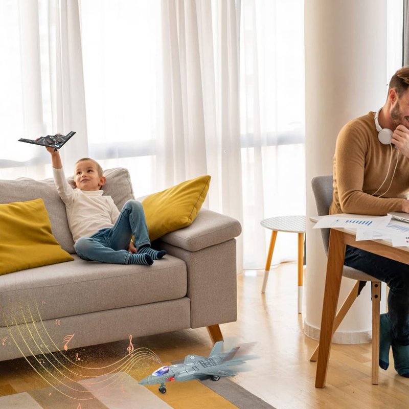 MUSIC AND LIGHTS → Children will love electronic instructions, especially the lights and sounds. This fighter jet is equipped with 3 button batteries to provide power for sound and light