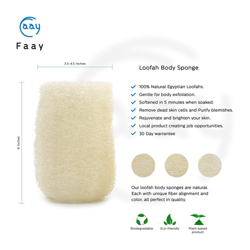 - 100% EGYPTIAN LOOFAH: Our desire to provide you with exhilarating scrub experience has been shaped into loofah bath sponges. Egyptian loofah grown in Southeast Asia is unique in its soft skin-friendly fiber and compact size suitable for body exfoliation. These approx. 4”x6” handy scrub sponges will gently remove your dead skin, help promote blood circulation and decrease your chance of developing pimples and purify blemishes, keeping your skin radiant, soft, and youthful.