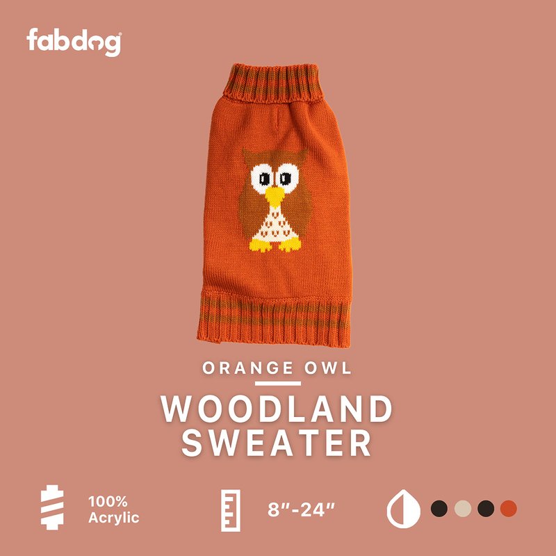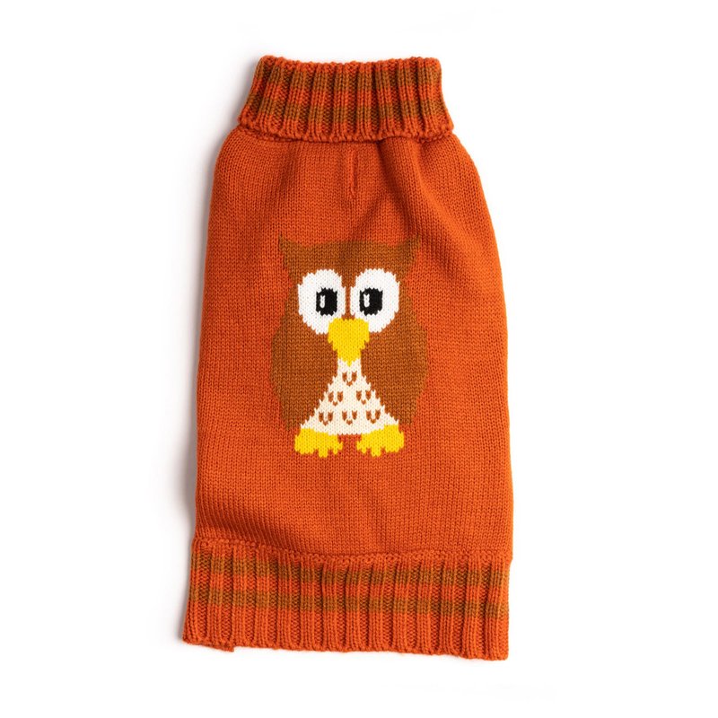 Fab Dog Americana Classics Knit Dog Sweater, Orange Owl, 8"