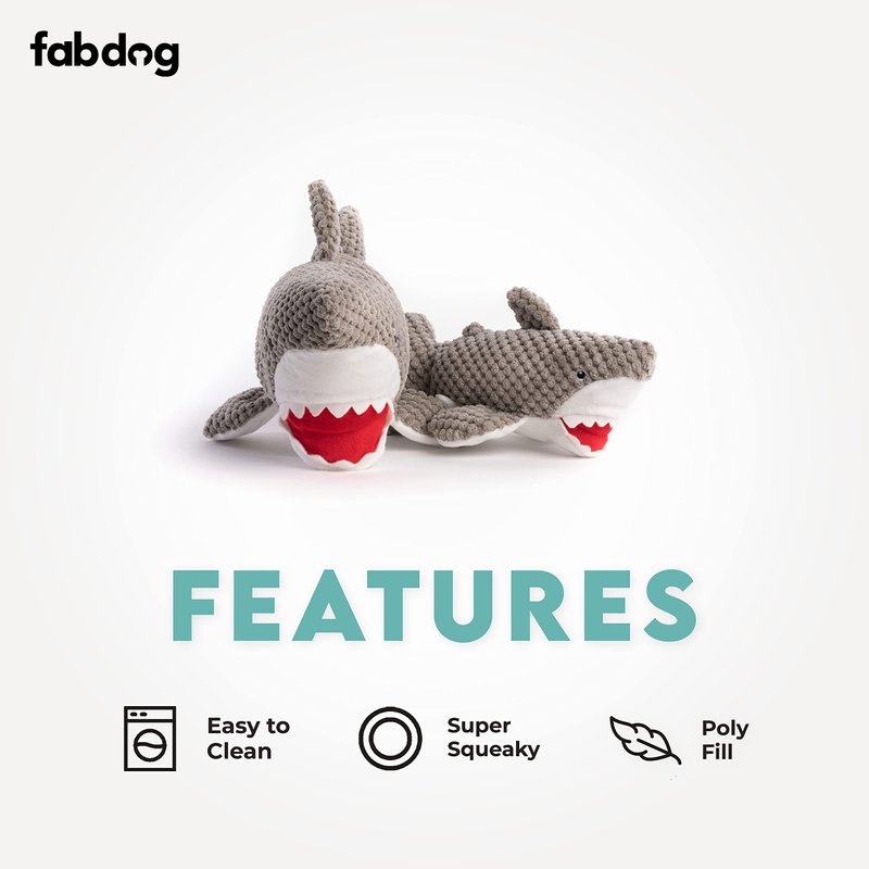 fabdog Floppies Plush Dog Toy - Cute & Durable Squeaky Dog Toys - Best Squeak Toy for Puppies and All Breeds | Ideal Pet Gift| Small Shark
